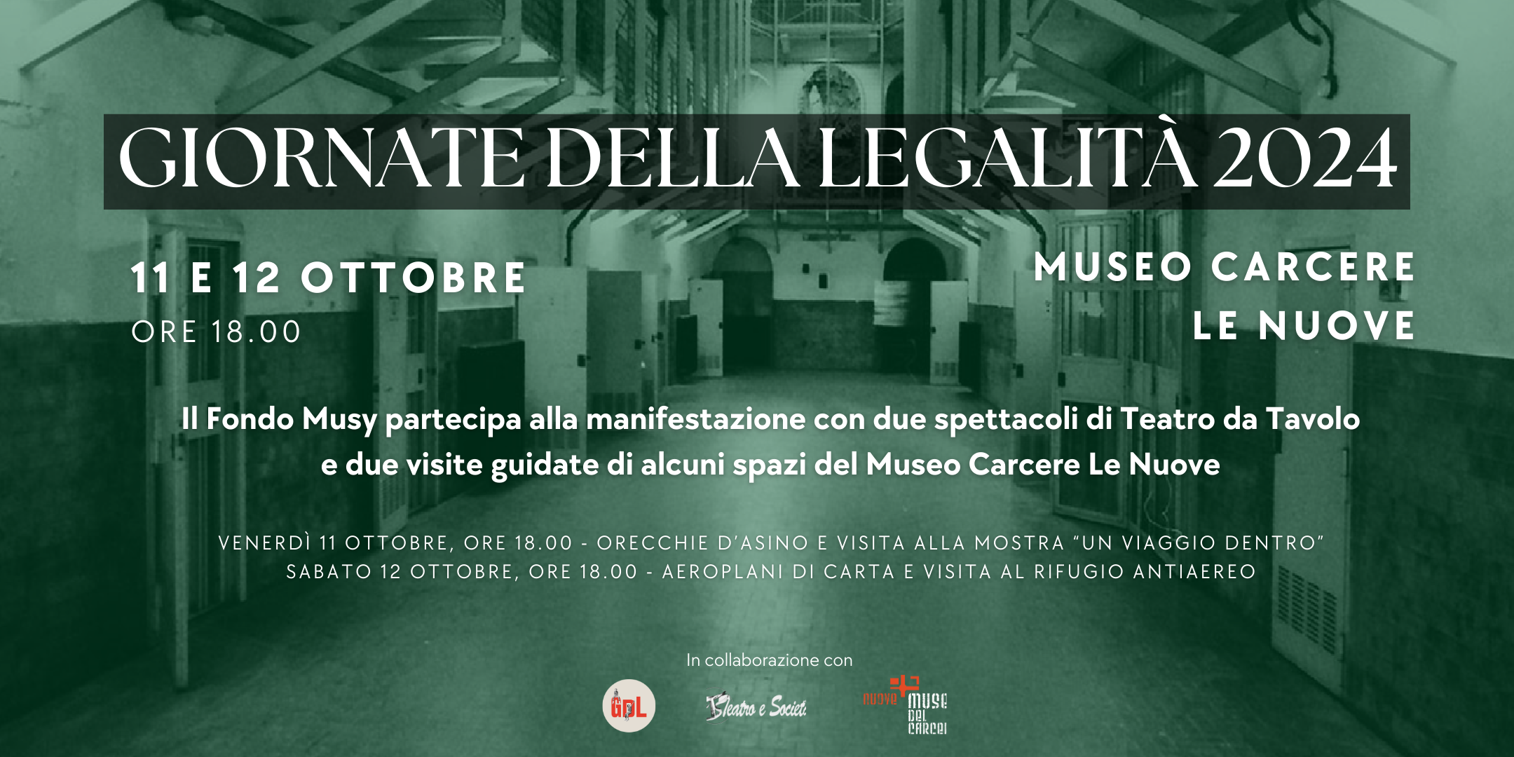 In occasione delle Giornate della Legalità, il Fondo Musy organizzerà due spettacoli di Teatro da Tavolo in collaborazione con Claudio Montagna, presso il Museo del Carcere Le Nuove di Torino.  Al termine dello spettacolo teatrale, per chi desidera sarà possibile partecipare alla visita guidata facoltativa di alcuni spazi del Museo.
