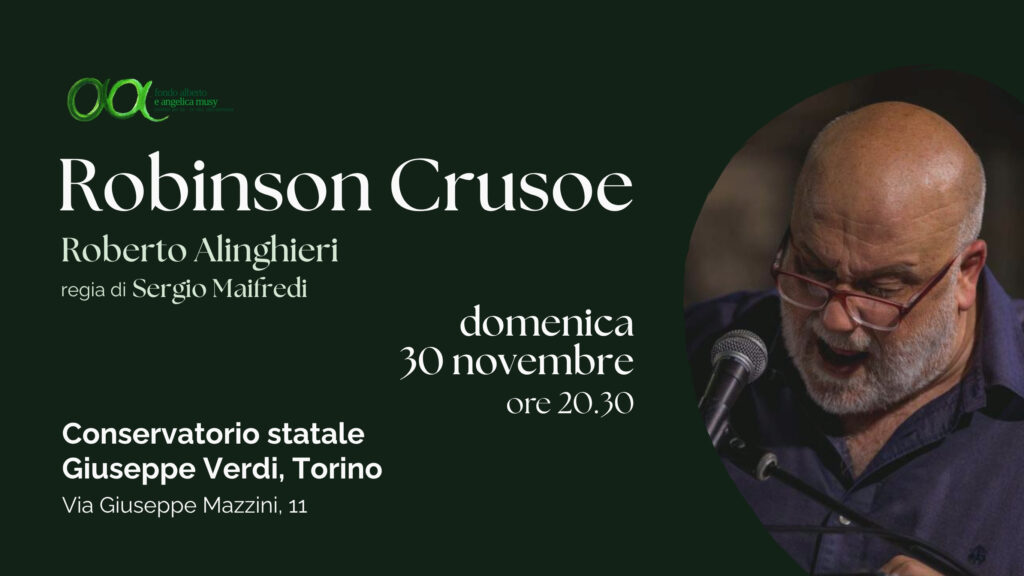 Domenica 30 novembre 2025, alle ore 20.30, il Fondo Alberto e Angelica Musy organizza il consueto spettacolo teatrale annuale con musica dal vivo. Sul filo rosso della scorsa edizione, il Teatro Pubblico Ligure porta in scena al Conservatorio Statale di Torino “Robinson Crusoe“, un classico della letteratura che prende vita sul palco. La regia di Sergio […]
